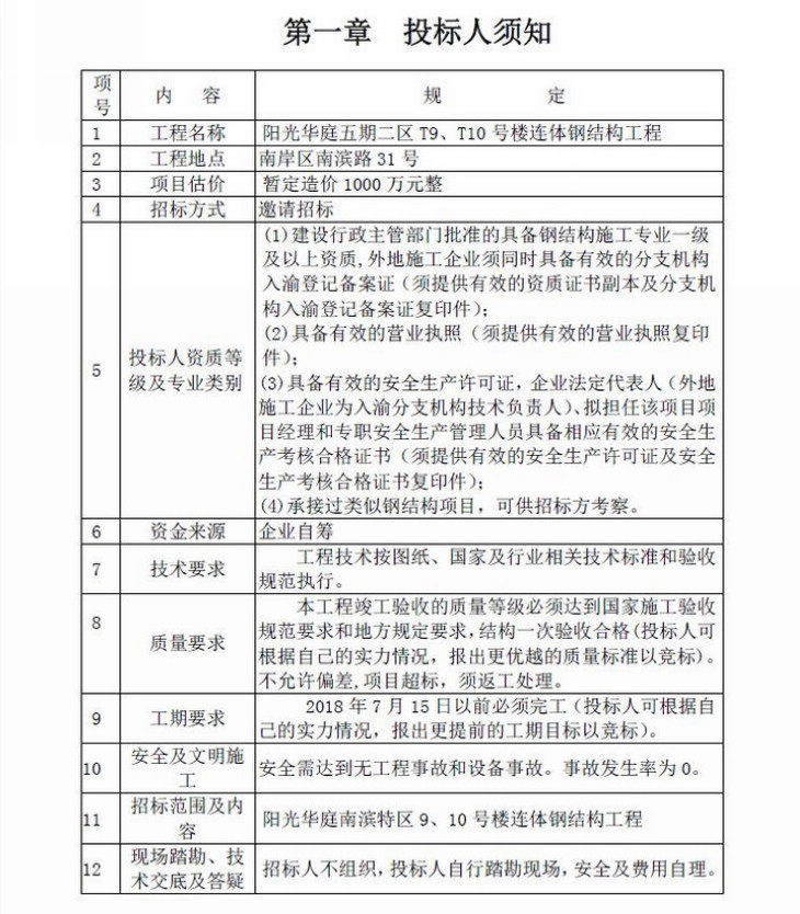 陽光華庭五期二區(qū)T9、T10號樓連體鋼結構工程招標文件